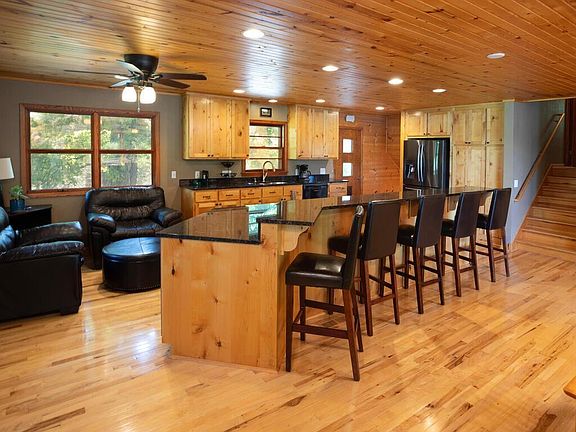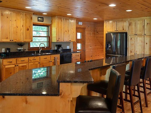 Meticulous lake home on 2.6 acres, 299' of shore on Lake Albert (no public access) Kitchen remodel Knotty Alder cabs, Center Island Cooktop, Granite, Snack bar seats 5, Bar fridge, wall Oven, Open concept design, Floor-to-ceiling stone Fplc. Panoramic views of Lake. French doors lead to Family Room w/2 full walls of windows, Swedish stove. Updated MF Bath w/ceramic floors/tub surround, updated fixtures. 3 BR on one level. LL Full Bath w/sep tub/tile shower, ceramic floors. LL Fam Room w/heated floors, floor-to-ceiling 2 sided Fplc w/oversized fire box, 4th BR w/Barn door, heated floors, 3rd FR w/built in Bar/Center Island, tiled floors, dual WOs to lakeside patio or front lawn. Perfect for lakeside gatherings/game room/work out room/etc. Recessed lighting thru-out. Tongue & groove Knotty pine ceilings-Foyer, Kitchen, Dining, LL FR. Large Laundry Room w/lower cabinets & folding counter, tons of Closet space. Solid 6 panel Doors. Generous Foyer w/Sitting area. Dock included.