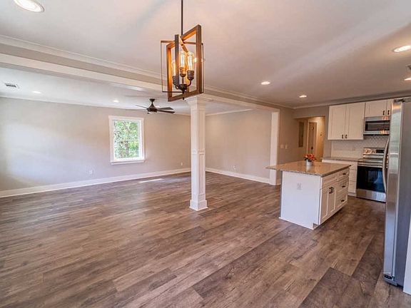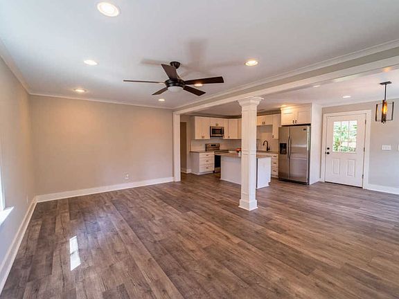 Lovely fully renovated farmhouse! Come and check out this gorgeous 4 bedroom home. It's ready for a new homeowner! Huge covered front porch with a fan; Perfect for entertaining! Beautiful flooring throughout and carpet in the bedrooms. Open concept with granite kitchen counter tops, beautiful kitchen cabinets, with soft pull drawers, stainless steel steel appliances. The master bedroom features a farmhouse sliding door that leads to the master bath, fully renovated bathrooms with granite counters.