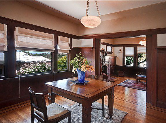 1st time on market in 25 yrs! A Craftsman bungalow gem, exceptionally preserved, meticulously maintained. 2bdrms/1ba. Formal entryway. Rich wood & period details accentuate living & formal dining room. Fireplace, hardwood floors, sunny, spacious kitchen to large deck, detached garage, fruit trees. Neighborhood Description Residential; reflective of Oakland's diversity with a collaborative spirit re common issues; many long-time residents; quiet