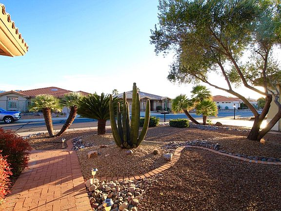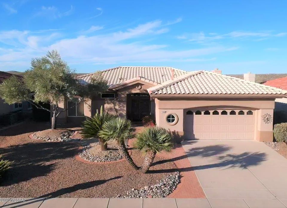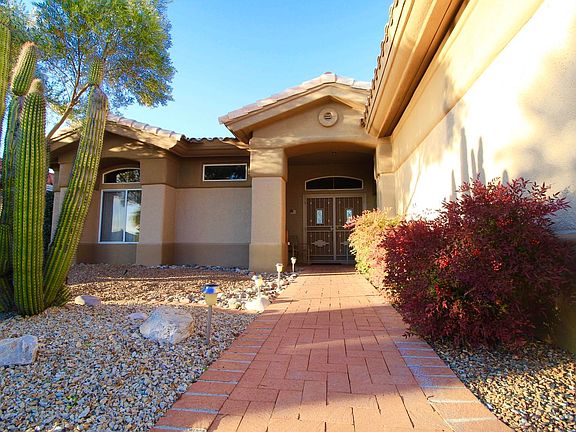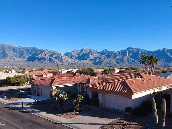 This Beautiful Home is the very popular Sunrise Model built and located at the very top of the subdivision. Location, location, location! Features 2 Bedrooms & 2 Bath with Dramatic Entry, Bright Spacious Living and Dining Areas. Also features an optional extended Arizona Room with gorgeous Catalina Mountain views and desert landscapes. Home also features a large covered rear brick paver patio. 2 car garage features built-in cabinets & golf cart storage. A state of the art aquatic and fitness center, 18 hole championship golf course, tennis courts, Artisan Center, and The Views Restaurant are all at your fingertips!