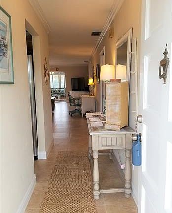 MILLION DOLLAR RIVERFRONT VIEW...PRIVATE dock..lifts approved..carport..laundry in residence. Like brand new. COMPLETELY remodeled. The rear lanai that has stairs down to your private dock that will accommodate 27-28 foot boat. Complex is across the street from multi-million dollar homes. New kitchen with Stainless appliances, wood cabinets with extra storage, granite tops, accent lighting in ceiling, 20" porcelain tile with minimal grout lines. Crown and 5 1/4 base molding. Both bathrooms have been updated with high rise dual flush toilets, wood vanities with granite tops. Inside laundry with new high end washer and dryer.Large living room with pocket sliding glass doors that overlooks the lanai/canal with river views. Cable and water bill are included in the low monthly condo fee. Annual flood assessment on each unit. Every room is beautiful, no disappointments ! Rentals allowed with restrictions.