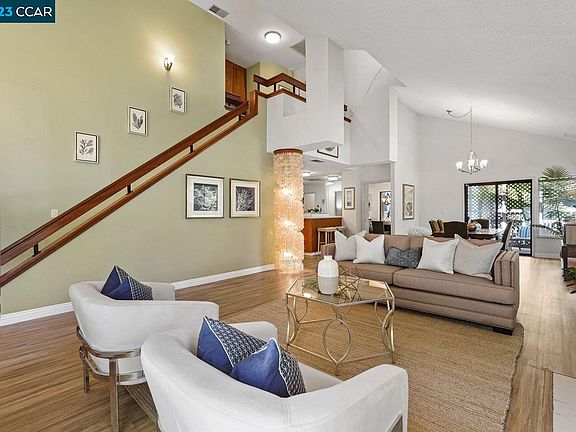 Spacious Home in Walnut Creek with 3 - Car Garage Step into this beautiful home with soaring vaulted ceilings, excellent natural light and open floor plan. Enjoy the living room w/ fireplace and wet bar, dining area, eat in kitchen, private patio and large Office/BR/Family Room with French Doors on the main level. There are 2 ensuite bedrooms upstairs, and a large 3rd Bonus Room, BA & laundry room downstairs. The attached 3 car garage offers a workshop and additional storage. Great location in this lovely community. The front door is steps from the pool and jacuzzi , with the tennis court nearby. Convenient Guest Parking on Geary Rd. Ideally located, within a mile to BART, Sprouts, Lunardis, Restaurants, Larkey Park and more. A block from the Contra Costa Canal Trail for walking or biking. End-unit Tri-level Spacious Townhome that lives like a Single Family Home. Tons of closet space and storage.