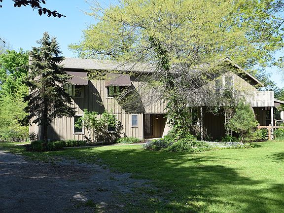 Price reduced 10K!Incredible open floor plan with up to 5 bedrooms, 3 full baths! Nature lovers paradise. This property is right on Tonawanda Creek with fabulous fishing and canoeing/kayaking. Large 3 acre treed lot. Amazing vaulted ceiling great room with a wood burning fireplace insert, full wall of windows and 2 sliders opening to enclosed 3 season porch. Great set up for guests or inlaws on main floor. Separate bedroom and bath for added privacy. Or...use that space as a home business/private office. Huge bonus room/bedroom on 2nd floor with private balcony.