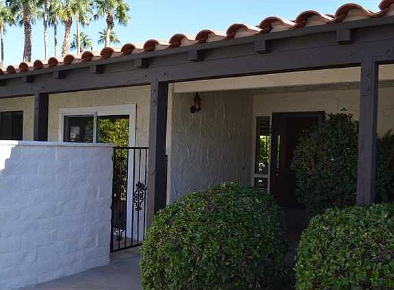 PRIME LOCATION, AMAZING PRICE! Private De Anza Villas condo with views over 3 fairways and the fountain! Features include 2 bedrooms, 2 baths, dual-pane sliding glass doors, plantation shutters, double oven, fireplace, separate laundry room, new carpet and paint. This prime location should not be overlooked. The complex features 3 pools, large spa, and two tennis courts and large grassy common areas. Move-In ready and fully furnished!!