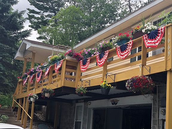 Beautiful lot, over 1/2 acre. Across the street from Mullet Lake and Beach. New flooring (carpet, laminate, and both bathrooms tile. Dining area w/living room. Nice kitchen with breakfast nook. Beautiful master bathroom, sunken tub, separate shower and two sinks. 3 bedrooms. Also remodeled second bathroom. Central air/forced air gas. Two decks surrounding entire house. Full basement unfinished, with huge work bench and plenty of storage area. Very cozy home!