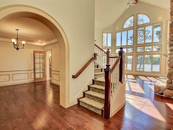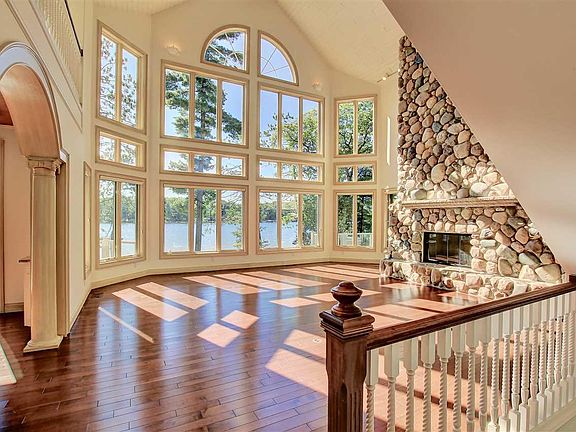 Complete privacy and paradise is at this 3+ acre waterfront estate with just under 200 feet of private Long Lake frontage. This luxurious five bedroom six bath retreat is a dream home, with all of the bells and whistles. Spanning 8000 SF, this magnificent residence, graced by soaring ceilings and wall-to-wall windows, is a haven for gazing at Long Lake views from multiple vantage points. The grand entryway with a sweeping staircase draws you into a voluminous layout made for entertaining. The 2-story great room is a dramatic focal point of the main level, accompanied by maple wood floors, an elegant formal dining room, tremendous chef's kitchen, den/family room with a stone fireplace and glass doors to the patio. The master suite presents large windows, a gorgeous fireplace, and an opulent ensuite bath with a soaking tub and separate glass block shower. The lower level houses a large rec room with waterproof floors, media room, and 2nd living quarters with a full chefs kitchen. The lower level takes you to the expansive back yard, where you can gaze at the stunning sunset views. Perfect family home.