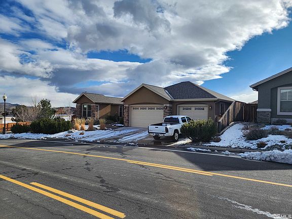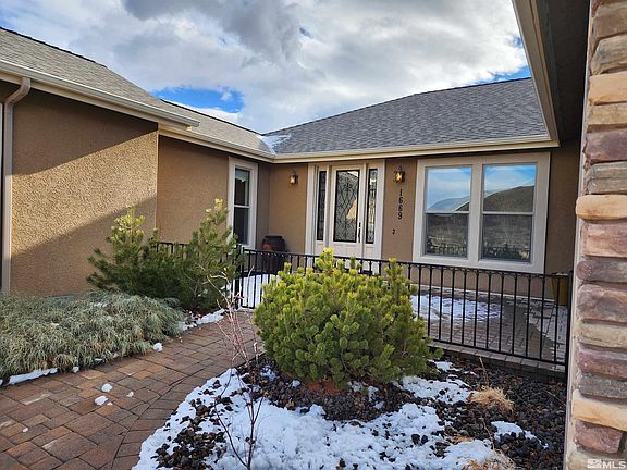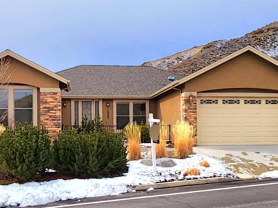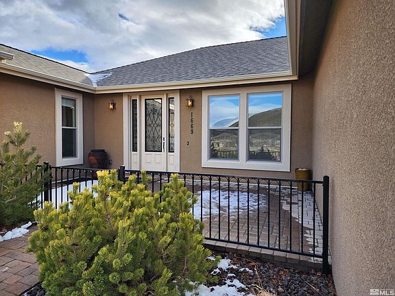 Golf Course Living on Silver Oak--This beautiful 3 bedroom 2.5 bath home built in 2015 sits on the 3rd fairway. The paver walkway guides you to the entry complete with an outdoor courtyard perfect for morning coffee or afternoon cocktails. Inside there is an abundance of natural light, a spacious office area, hardwood floors, quartzite counters, double oven, breakfast bar & nook, gas fireplace, high tray ceilings w/ fans, split bedroom floorplan, huge primary walk-in closet, dual vanities, large Garden Tub, There is a covered deck out back and an paver patio side yard with cherry, apricot and apple trees on a drip system as well as an herb garden. Outstanding views of the mountains and golf course for your daily enjoyment. There is a landscaped open space to the east of the property giving you even more privacy and serenity. Oversized 3 Car garage. Close to Shopping, restaurants and hospitals. Reno is a short 30 minute drive.