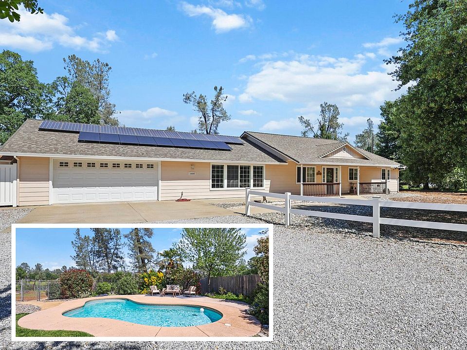 This beautifully updated home boasts attention to detail at every turn! With captivating VIEWS of MT. SHASTA this move in ready home sits on over 2.5 acres with OWNED SOLAR, a SPARKLING POOL, and a meticulously landscaped backyard with a firepit and lush greenery. Inside, enjoy separate living and family rooms, an open floor plan, and a cozy gas fireplace. The kitchen shines with quartz countertops, stainless steel appliances, an island with breakfast bar, and an adjoining dining area. The spacious primary suite offers a luxurious ensuite bath with quartz, double sinks, jetted tub, and a custom tiled shower. A perfect blend of comfort, style, and space!
