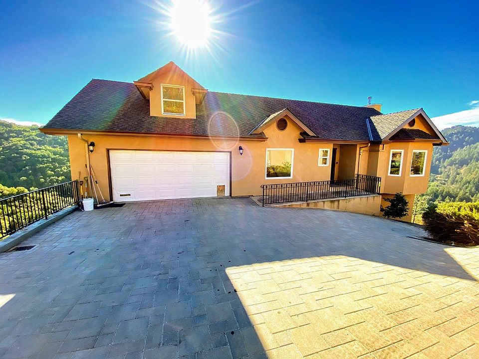 Incredible views! Elegant custom home with panoramic views! Private and serene, yet just minutes to downtown Saratoga (3.5 miles). House is surrounded by nature offering amazing views from every room! Open concept living and cathedral ceilings, inviting living room w/fireplace, access to large private deck, dining room and gourmet kitchen with stainless steel appliances incl. refrigerator, professional Viking gas stove, extra counter space & pantry. Separate family room. Huge master suite retreat features sitting area, walk-in closet, & access to huge wrap around balcony. Master bath has double sinks, shower and soaking tub. Large double pane windows fill the house w/abundant natural light and dramatic views. Beautiful hardwood floors throughout, recessed lights, freshly painted, newer central heating & A/C, laundry room. Attached oversized garage w/EV charge station. Enjoy over 4.4 acres of peaceful private fenced yard, large patio, garden and batting cage. Excellent Saratoga schools!