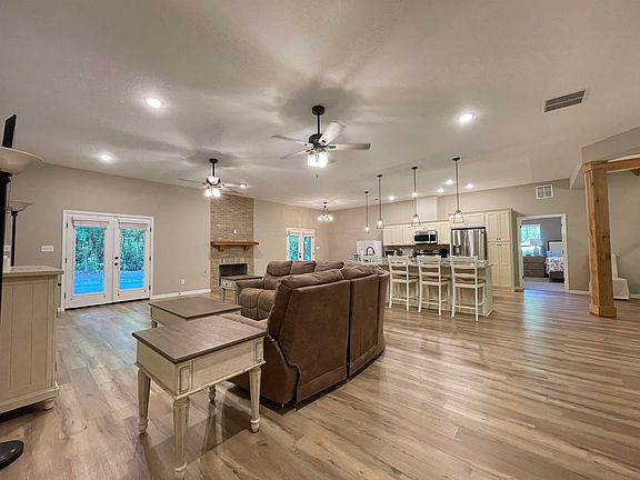 Tucked away behind the trees is your escape from city life. This single story, 3 bedroom home offers a spacious open floor plan with modern amenities, large kitchen with ample storage, & cozy living area. Being sold together with adjoining lot for total of 14 acres. Plenty of room to build shop or start a farm. Guest house out back has a full kitchen & bath.