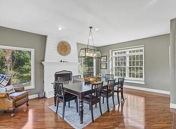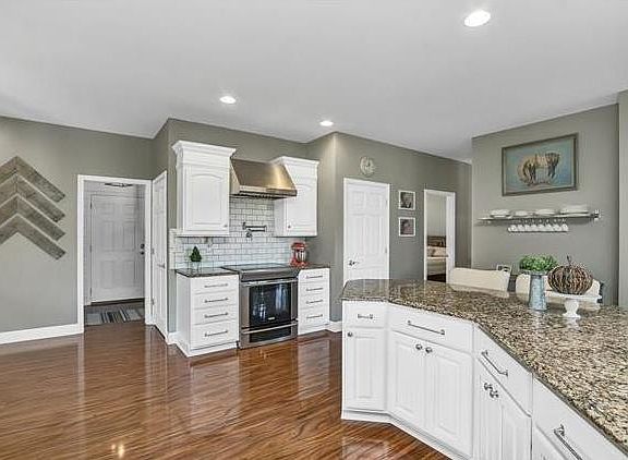 This newly updated gorgeous 5 bdrm/4.5 bath ranch is a must see. It is nestled on a scenic 3 acre lot that backs to private lake for an exquisite view. Upon entering the brick front ranch that has been freshly landscaped, the formal entry welcomes you into the spacious and open main living space great for entertaining. The living area has an atrium walk-out to the maintenance free deck that provides a stunning view of the lake as well as the fenced back yard. The interior flows from the formal dinning area with fireplace through the massive eat-in kitchen that features custom cabinetry, granite counter tops, Large center island/breakfast bar. Main floor laundry with built-ins and shiplap. The master suite features walk in closet, luxurious bathroom with dual sinks, separate shower and soaking tub as well as access to the deck. The finished lower level provides additional living space with a family room, media area, wet bar and a full bath.