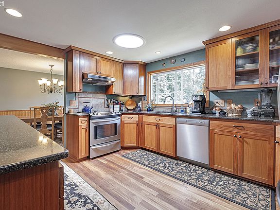 Beautiful Home on 1/3 Acre Lot. Newer Siding & Roof (2013), Huge Covered (Tongue & Groove Cedar) Deck (21x14) w/Skylights & Lower Deck w/Hot Tub. Gourmet Kitchen w/Granite, Stainless Appliances, Pull-outs & Island is Open to Dining & Living Room. Master has New Carpet & Bath (2017) & Heated Bath Floor. 2 Additional Bedrooms up. Family & Bedroom on lower level w/laundry & bath, plumbed for shower. HOA covers Commons & provides RV Park. Oversized Garage & Covered RV/Boat Parking!! Minutes to Town.
