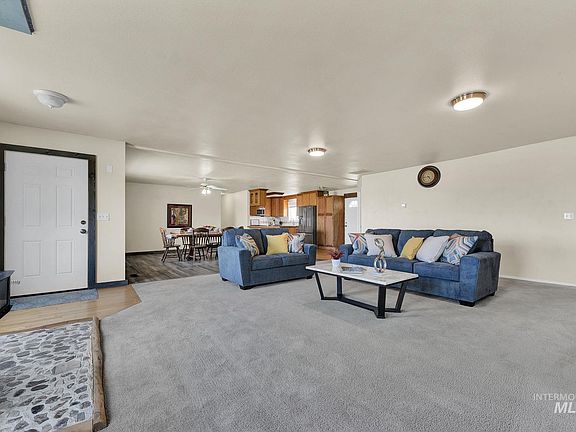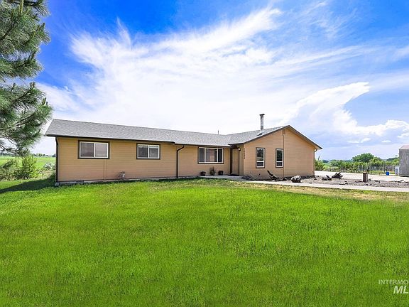 AMAZING VIEWS. Quiet acreage features 5 bedrooms, 3 baths & an office. 2 Shops (1) 24x30 insulated w/power (2nd) 36x32 insulated w/upstairs, metal roof & sides and 220 power. Huge living room open to the dining & kitchen w/unique split bedroom design. Features laminate, carpet & hardwood flooring plus tile in all baths. Galley style kitchen with beautiful butcher block finish counters and lots of cabinetry. Gas stove, separate microwave/hood with huge counter area. Built in pantry - all open to the living and dining areas. 5th bedroom could be play room or ? -opens with double doors. Primary suite includes walk-in closet & addtl closet, newer tiled 4x6 shower & large soaker tub. Xtra sitting area in primary suite is 9x11. Expansive bedrooms. Lots of storage throughout. Great potential. Views across the valley. 25x25 back redwood deck for gatherings. 8x32 addtl decking. Room for animals. Application in for water rights. Inspection and appraisal done. Quick close. Ready and great buy.