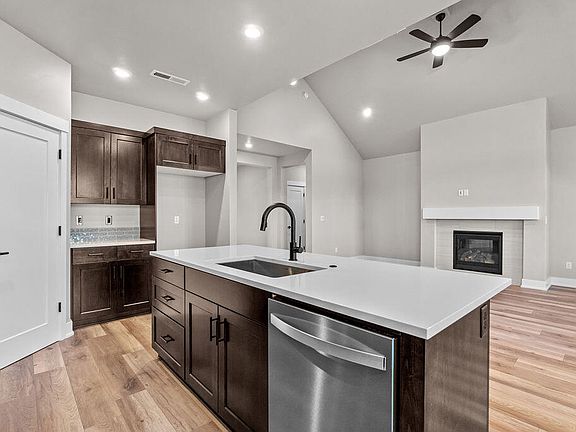 • Smart Lock(s), Breakfast Bar, Built-in Features, Double Vanity, Enclosed Toilet(s), Fiberglass Stall Shower, Kitchen Island, Linen Closet, Open Floorplan, Pantry, Primary Downstairs, Shower/Tub Combo, Smart Thermostat, Solid Surface Counters, Vaulted Ceiling(s), Walk-In Closet(s), Wired for Data