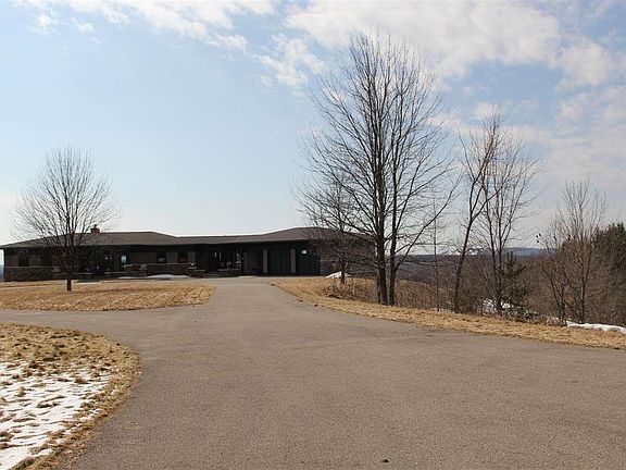 Frank Lloyd Wright style home elegantly situated 1/4 mile from gated entrance and atop surrounding countryside (Elev. 1020 ft) with a view for miles and miles including Crystal Mountain Ski area view. Ledge stone & field stone enhance the exterior. Oak, ceramic,marble, porcelain tile, floors. Granite & silstone countertops, china sinks, Kohler fixtures, cherry cabinets, central vac, central sound system,. Geothermal heating/cooling system, irrigation system; Small pond off lower level patio. Glass railing deck system, 500ft mahogany deck; underground electric, 2 additional garages incl.area for RV storage and 200 amp service in each. Built by Jim Cooley. Total 9,040 Sq.ft. of buildings on property.