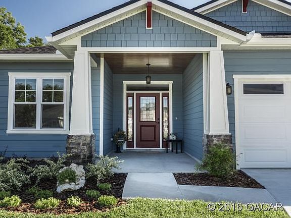 The spacious open 3 bedroom plan offers soft close cabinet drawers, granite in the kitchen and bathrooms, under cabinet lighting in the kitchen, wood look tiles floors in the great room and foyer, a paver patio with fire pit, stainless appliances including refrigerator, gutters, security system, screened porch, trim and crown throughout, stained wood ceilings on the front & back porch, FULLY fenced backyard, speakers in the great room, master, and porch, and more! All conveniently located between Alachua and Highs Springs. Home is on city water and sewer and is close to I75, the new Publix, schools, the Springs, restaurants, dining and more! MOVE-IN READY NOW. USDA approved for 100% financing! ask about preferred lender incentives!