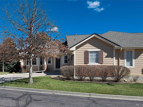 Welcome home to this beautiful Ranch Style Townhome in Auburn Hills. Original owners kept this home in excellent condition, shows like new! Open floorpan with hardwood floors and vaulted ceilings bringing in the light. White shutters and Hunter Douglas shades adorn the newer high efficiency windows throughout the home. Enjoy the eat-in kitchen with tons of storage and Stainless Steel Appliances. Kitchen opens to a formal dining area for entertaining. Inviting Living room with a gas fireplace. Large Primary bedroom with bay windows and views of the pine trees. Five piece bathroom, and walk-in closet. Second bedroom also has bay windows and Office could easily be made into a third bedroom if needed. Step out onto your private covered patio backing to green open space and enjoy your morning coffee or an evening barbecue with friends. Spacious unfinished basement with new window wells. Garage has additional built in storage. Brand new roof. Perfect for low maintenance living. The HOA maintains front and back landscaping, snow removal including the driveway to the front door, water, sewer, and trash. Great location, close to shopping and restaurants and easy access to DIA, 470 and I25. Hurry, this one won’t last!