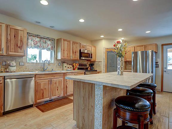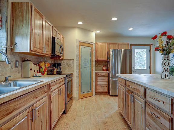 A MUST SEE! Better than new in La Pine! This home sits on a spacious beautifully landscaped corner lot. The backyard is the perfect outdoor living space with a covered patio and a goldfish pond in the backyard. Home is newly remodeled within the last year with an open kitchen and newer stainless steel appliances, Tile floors and newer carpets. Master is on the main. There are 2 sheds and full RV hookup. New asphalt driveway with 10 year sealant. Make your appointment to see this home today!