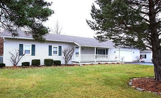 Ranch with great location just off of St. Rt. 33! A welcoming open floor plan is complete with living room, dining space, and kitchen. Kitchen boasts stainless steel appliances and ample amounts of cabinet storage. The dining room is finished with a sparkling hardwood floor and access to the back yard. First floor laundry is located in the spacious mudroom that accesses the back deck. 3 bedrooms and 2 full baths complete this home! Semi finished lower level with a large amount of storage. Backyard boasts a deck and even a shed. Large 2 car garage provides a great deal of space for storage or even a work space! This home is a must see- set up your showing today!