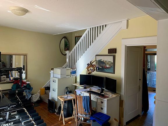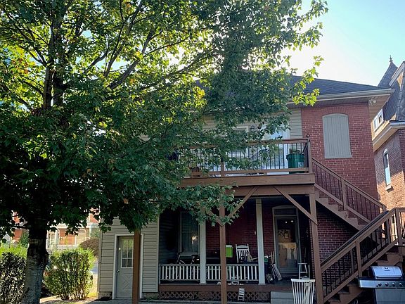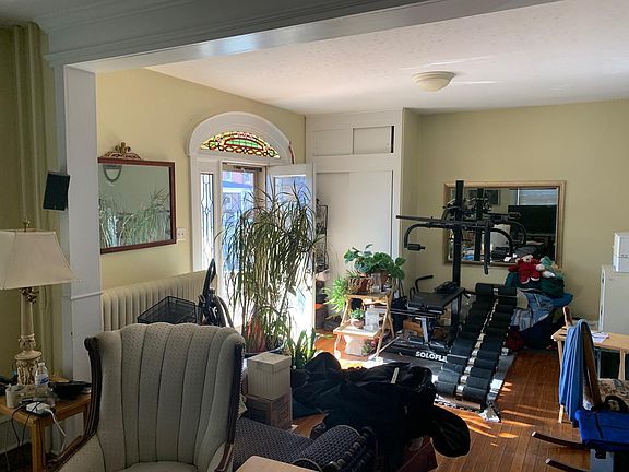 Beautiful brick apartment (1st & 2nd floors) on a corner lot, with hardwood floors throughout, large beautiful windows, front and back porch, and peaceful back yard. Includes separate 3-car garage on a quiet street. Also has basement for storage and laundry area, (W/D optional). Owner pays for oil heat, and water/sewer/trash. Tenant pays electric. NO PETS- Thank you. 1-month Security Deposit. Tours beginning Oct 21. Available to rent Nov 1. Unfurnished (pictures include previous tenant's furniture).