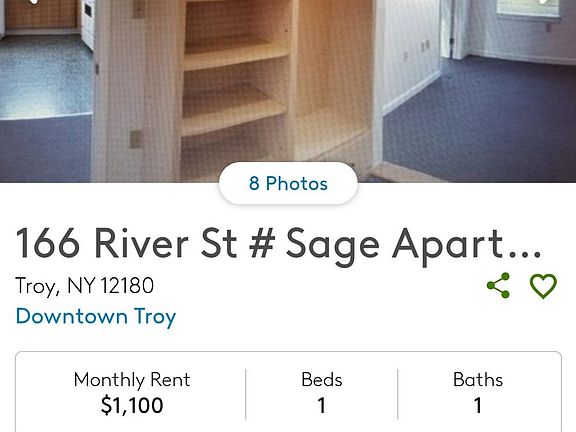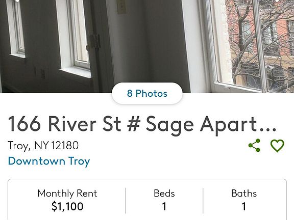 This is a one bedroom apartment utilities and water included. This apartment is located in downtown Troy and right on the Russell sage campus. There is campus parking and off street parking available. Washer and dryer included. This is a perfect apartment for a young professional or student. It is a smoke free and pet free building.. There is off street parking and campus parking available. Courtyard available for outside parties and barbecues.