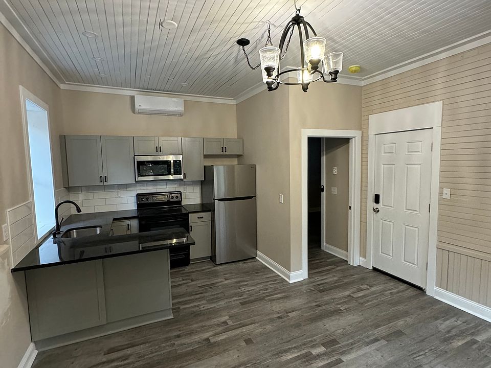 Completely redone apartment. Bathroom has been entirely done with new walk-in shower. New kitchen. Entire apartment has been re-painted and new vinyl plank flooring In-unit mini-splits for heating/cooling Off street parking with a great location close to downtown
