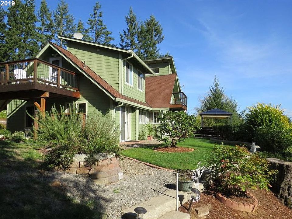 Enjoy the privacy and views of this pristine 5+ acre updated home! Gorgeous views from 2 decks & covered gas fire pit! Granite kitchen w/eat bar. All appliances & W/D inc! Walk-in pantry w/hidden cubbies! Wood stove. Large bedroom on main w/full bath. New interior paint. Luxurious vaulted master w/soak tub, balcony off bathroom & private outdoor room! 3 sheds & deep well hand pump on property. Detached garage w/400 SQFT loft bonus room!