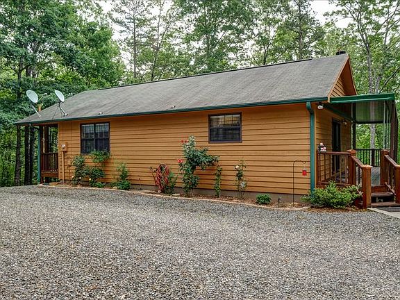 Simply Stunning! Bring your green thumb to this house and feel right at home! Beautifully landscaped, terraced gardens grace the wooded property, shaded by mature trees and augmented by a stone birdbath, fire pit conversation area, garden shed, and immaculate garage with front carport area and back concrete floor. Two-level wraparound deck with walkout access from both levels. Linger on the porch for quiet chats, then cook up your homegrown produce in a bright kitchen and serve dinner before the stone fireplace. Two bedrooms and bath are steps from each other; downstairs is a kitchenette, family room, laundry, and bonus space for home office or extra beds. Start growing your dreams here!