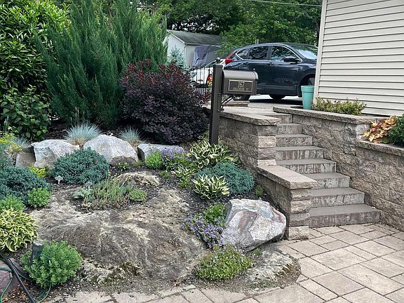 - Exterior features: Extensive Hardscape, Storage, Stone Retaining Walls