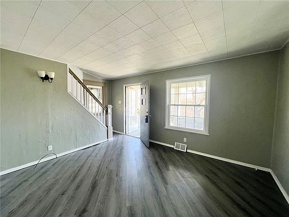 Ideally located on a quiet non-through street, this 2-story home offers comfort, style and modern updates. A relaxing open front porch is foremost and lends access to the free-flowing floor plan. A sundrenched living room is underscored in woodgrain flooring and opens into an intimate dining area. Woodgrain flooring continues into the enviable kitchen showcasing rich, dark mocha cabinetry and contrasting counters. A centrally located powder room completes the main level. Upstairs, rest and relaxation await in 2 comfortably-sized neutral bedrooms underscored in wood flooring. An updated full bath underscored and encircled in ceramic tile is complimented by new fixtures and a pedestal sink.