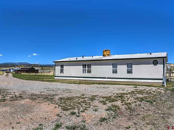 Cute double wide mobile home on a permanent, HUD APPROVED, foundation with hardy board siding, a mud room, 3 bedrooms and 2 full baths, and an open floor plan. A ditch runs through the property which provides waste water irrigation from the neighboring farm. Good access to Bayfield and Ignacio and located just off CR 509 in a farming community. The land is surrounded by large farms. The bus stop is at the end of the street. The property is fenced for horses or livestock and domestic animals. No covenants or restrictions just peaceful relaxation. The original white building located on the property is currently being used as storage. There is an old building that was once a horse stall could use some rehab. The wood tuff shed is excluded from the sale. Property would make a nice hobby farm!