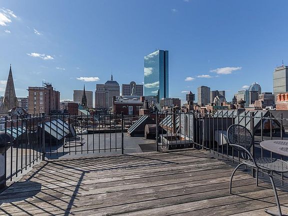 Location! Location! Million dollar views can be yours in this charming Victorian Penthouse. Located in the heart of Back Bay, just one block to the Boston Public Garden & one block to the Esplanade overpass, as well as steps to Newbury St and Copley Square. You can not find a better spot! Let the generous entry foyer/coat area lead you into the space where you will find: oak floors, exposed brick, charming fireplace, glass brick accents, classic white kitchen with wine storage, high ceilings, french door and period moldings. A generous utility closet provides full size, private, in-unit washer/dryer as well as ample storage. The library stair leads to your own private roof deck! Relish in River Views during the day and the glittering lights of the Boston Skyline at night. Move in in time for a 4th of July party. Elegant, no pets building with professional management. Energy efficient Pella windows allow in all day sun! No rental restrictions makes this a valuable investment!