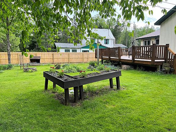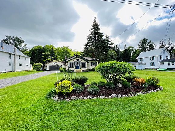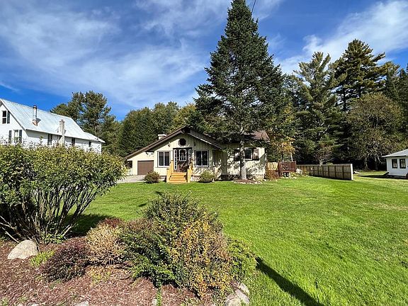 PRICE REDUCED! Charming ranch house situated in the pleasant neighborhood of Thendara. Walking distance to the Moose River and several hiking trails plus direct snowmobile trail access and only minutes from McCauley Mt. Pleasant landscaping throughout, fenced in backyard and a spacious outdoor deck, great for entertaining. Front entrance into the sunroom/porch and great room with a stone fireplace and gas woodstove. The kitchen and dining area adjacent to eachother and offer a nice, open sitting area with bar. On the right side of the house is a guest bedroom with a full bathroom. Facing the backyard is the master bedroom ensuite. An office with pretty views could also be used as a third bedroom. There is an attached oversized garage plus an additional covered pavilion for plenty of storage. All furnishings included and turn-key.