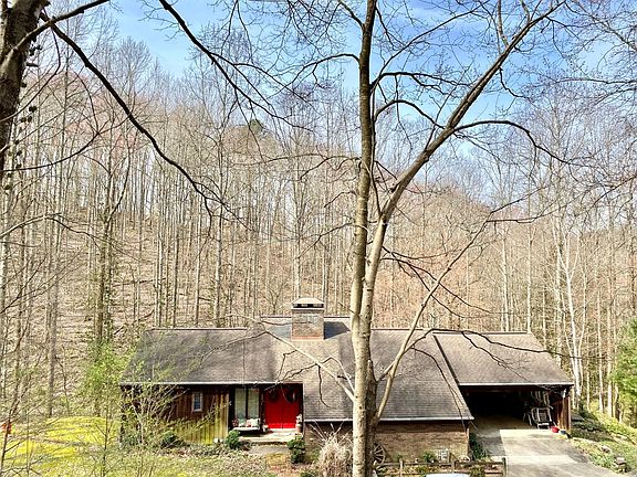 If you want location and seclusion, this 3 bedroom 2.5 bath, 2900 sq ft home is for you. Main level has master suite and bath, one bedroom, half bath, kitchen, dining area and great room. Full finished basement has bedroom, full bath, office, utility room, family room and workshop. Just minutes from town and sits in the middle of 3.8 acres of wooded land. Beautiful views from covered porches.