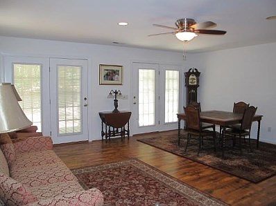 This lovely home has been lightly lived in, most recently by a professor who only lived in the house a few times a month. It is tucked back on a large lot with many shrubs and trees. In a quiet, established neighborhood that is conducive to outdoor enjoyment, it is just over a mile to the center of picturesque Southern Pines. The home has a lovely, open floor plan with smooth ceilings. The cook can enjoy whatever is going on in the great room! French doors lead to the covered patio with a new ceiling fan.