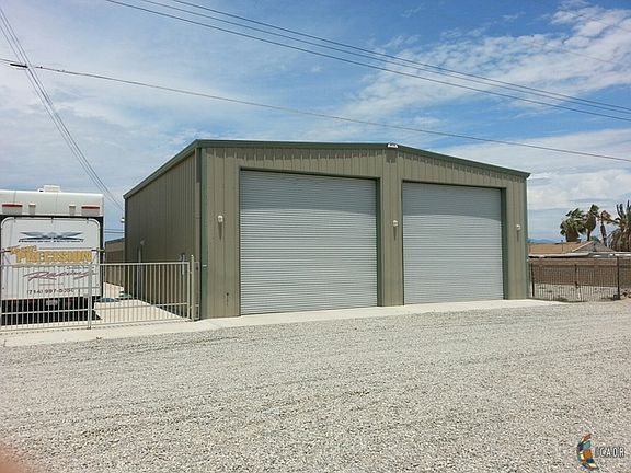 Salton Sea Beach, California 167-169 Brawley Avenue. 3 Bedroom / 1 Bath approx 1200 m/l Sq Ft Manufactured Home/Stick built additions, Fireplace. (Permitted) and 1890 Sq Ft metal garage with two 14ft high x 15ft wide electric or manual roll up garage doors. 200 AMP Panel (separate from house). 6 sky lights, roof vent, full bathroom with laundry. Septic. Rear enclosed patio with laundry, lots of concrete. RV hook up, Direct TV in garage, completely fenced. Includes: 169 Brawley - Vacant lot adjacent to the East. Block wall on two sides (East/West side of property.) Graded with water service on site.