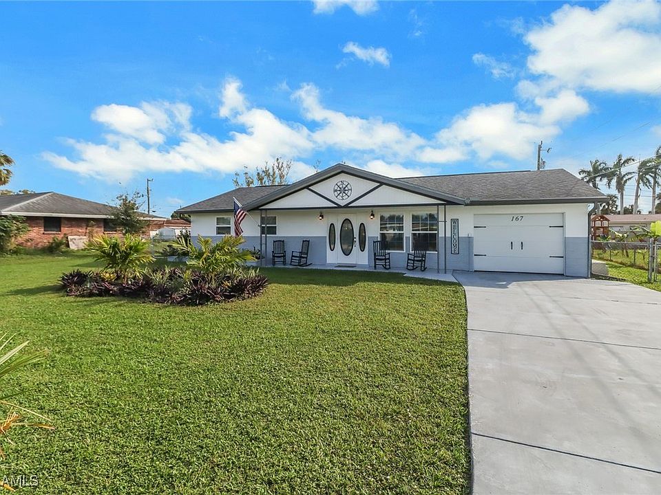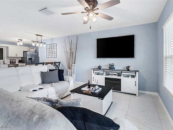 Welcome to your dream home! This fully renovated home offers 3 bedrooms and 2 bathrooms, all set within a delightful open floor plan that basks in natural light. The charming front porch invites you to experience the warm and inviting ambiance of this countryside-inspired home. As you step inside, you’ll be greeted by elegant tile flooring throughout—say goodbye to carpet! The highlight of the home is the gorgeous kitchen, featuring white shaker cabinets, luxurious quartz countertops, chic subway tile, and stainless-steel appliances. The guest bathroom is adorned with exquisite porcelain tiles and a relaxing tub, while the master bathroom showcases an open shower with brushed nickel hardware. Step outside to the expansive lanai and relax, where you can enjoy the views of a large, fenced yard that provides ample space for pets and potential for a pool. Entertain family and friends by the firepit, or by the outdoor kitchen and enjoy leisurely moments in the screened gazebo on your hammock. Additionally, there's a handy bonus shed for extra storage needs. For those who love fresh fruit, a mature mango tree graces the yard, adding a delightful touch to your outdoor space. This home also includes significant updates: a newer roof, new windows, a new AC unit, and a new water heater, ensuring peace of mind for years to come. Conveniently located just minutes from downtown Fort Myers, this home is the perfect blend of modern upgrades and serene living in a quiet, private setting. Don't miss your chance to own this beautiful property—call today for your own private tour!