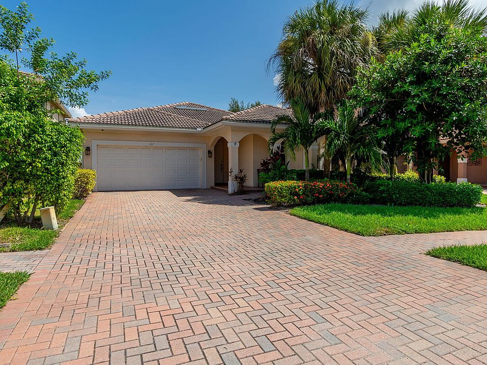Welcome to this lovely move-in ready home in the exclusive community of Bella Terra. Features of this CBS home include a brick paver driveway, tile roof, open floor plan, split bedrooms, tile and laminate floors, central vac & large walk in master closet. The backyard offers privacy w/ tall hedged bushes lining the fence, covered patio & beautiful travertine pool deck. No neighbors in the rear! This tranquil setting features an exterior shower for your convenience. Home has been equipped with small solar panels used for the water heater. Bella Terra is a gated community situated in a central location close to retail, restaurants and highways. They offer a wide range of amenities to their residents, incl. a fitness center, tennis, basketball, pool, tot lot and BBQ