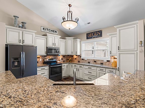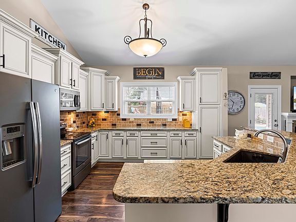Welcome to your dream home in the desirable Cleveland community! This immaculate single-level gem offers a spacious open floor plan perfect for modern living. The stunning kitchen features pristine custom cabinets with ample drawers and pantry space, complemented by beautiful granite countertops. An expansive family room with a cozy fireplace seamlessly connects to an open dining area, making it ideal for gatherings and entertaining. This thoughtfully designed split ranch layout boasts a primary suite with separate garden tub and shower, and dual vanities. Two additional bedrooms and a HUGE bonus room, perfect for an in-law suite or versatile living space are tucked away on the other side of the home. Three full baths throughout ensure comfort and convenience for everyone. Step outside to enjoy a large screened-in porch overlooking a backyard paradise with an in-ground hybrid saltwater pool. Don't miss your chance to own this exceptional property that truly has it all!