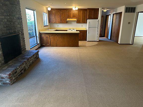 Unit has open concept living room / kitchen. with a fireplace. New carpet and paint. Attached shared garage with laundry. No smoking or pets allowed.
