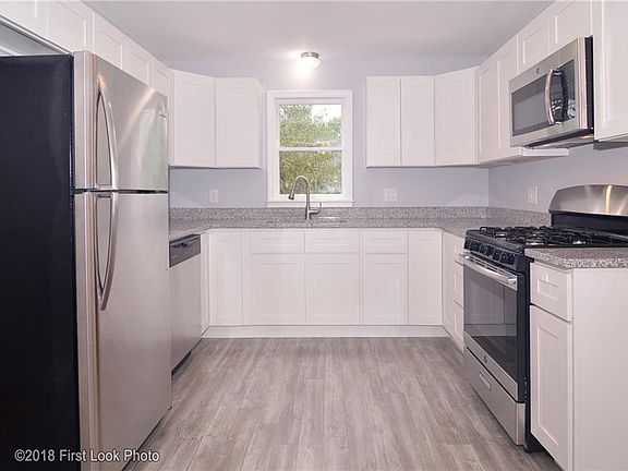 Turn key 3 bed 2 bath Cape with tons to offer. Step into your home from your breezeway and enter into your spacious bright "U Shaped" kitchen with stainless appliances and granite. Classic white cabinetry compliments the flooring and appliances . Bright dining area and kitchen are a great entertaining combination for friends and family. Hardwoods in the bright living room make for easy maintenance. Updated comfortable sized full baths offer plenty of storage as well. Spacious beds with ample closet space.Lower level basement has finishing potential with high ceilings. Attached garage parking for 1. Cute brand new front deck. Appealing blue exterior. Great location convenient to shopping and amenities. Schedule a tour today.