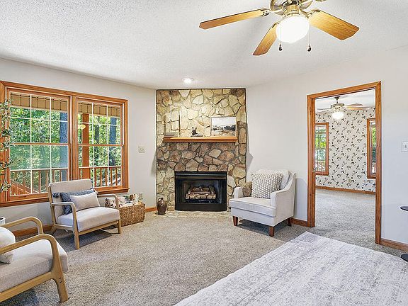 PRICE REDUCED TO BELOW TAX VALUE!! Welcome to your dream escape! Nestled on a serene, wooded 1-acre lot, this spacious 4-bedroom, 2.5-bathroom home offers the perfect blend of privacy, comfort, and natural beauty. Located in a quiet, no-HOA neighborhood on a private road, this property provides the perfect location to enjoy nature. Although the lake is privately owned, you can still enjoy the view and watch the wildlife that the lake attracts. Inside, you'll find a thoughtfully designed layout with plenty of room to spread out. The home features a large family room, perfect for gatherings and entertaining, as well as a dedicated office/study for remote work or quiet reading. Cozy up by the gas log fireplace on chilly evenings, or retreat to one of the spacious bedrooms for a peaceful night's sleep. This home also has a large 2-car garage, a separate unheated workroom for projects or hobbies, and ample under-house storage. Step outside to enjoy the outdoors year-round on the expansive wrap-around porch, or unwind in the screened-in porch featuring a hot tub installed in 2024—your own personal oasis. Additional features include a recently updated roof and a home Generac generator, offering peace of mind in any season. Washer and dryer convey with the home. Don't miss your chance to own this one-of-a-kind property. Schedule your private showing today!