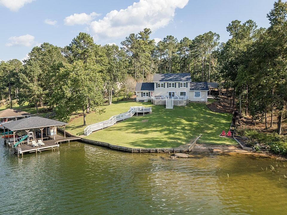 This stunning LAKE SINCLAIR home has amazing jaw dropping views. Being next to the dam, the water is BEAUTIFUL, clear, and so deep that you can slide right off the dock and never reach the bottom! Nestled into its quiet cove, you can kayak and not get huge waves from boats. Huge lot with 3/4 of an acre and a BEACH area for you and your crew! 170' of WATER FRONTAGE! Double Boat Shelter / Dock! Huge LAKESIDE DECK, lighted walkway, and boathouse with MAX DOCK! This home even has a double carport set up for camper storage! Move in ready with NEW ROOF, new water heater, and HVAC new in 2021. Fresh interior paint in majority of living spaces. 10 minutes from downtown and both colleges. Hot tub not included but is negotiable. Square footage is per most recent appraisal.