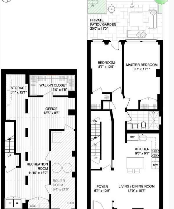 Boerum Hill's finest 2 bedroom garden rental! Newly renovated, spacious home with open kitchen and living area, two large bedrooms, designer bath with sleek cabinetry, and an incredible full finished basement with laundry, workout/office area, and loads of storage! Not enough? Open the french door out to your personal terrace area to tend to your potted plants, sip coffee, and barbecue for friends. This great home has CAC, a large side by side washer and dryer, and a dishwasher. Don't miss the secret door from the garden level that takes you to the spotless basement! This apartment is ideally located 1 block to the F/G and all the wonderful shops and restaurants on Smith Street and just a few blocks to the A/C/2/3 and Barclays Center/Atlantic Center Terminal. Occupancy February 1, 2021.