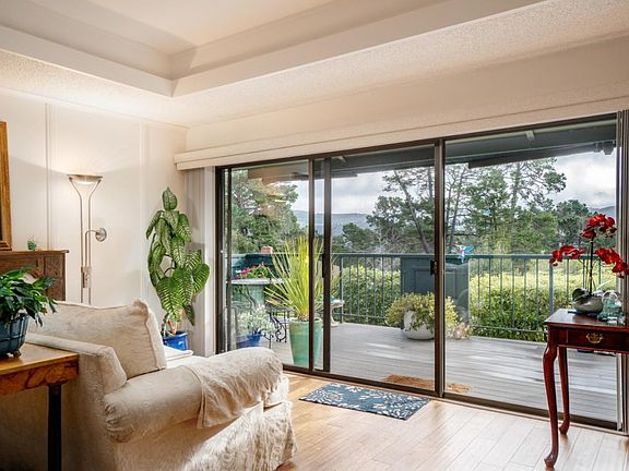 Step into this private single level "A" model with a treehouse feel. South facing and surrounded by forested valley below, Santa Lucia mountains beyond, a serenely landscaped walkway leads to level entry with no steps. Huge attic storage. Covered carport space, tastefully remodeled kitchen and baths with beautiful Walnut finished hardwood floors, the unit is convenient to Del Mesa's many amenities - the gourmet restaurant, clubhouse, pool, spa, putting green, lawn bowling, library, events, activities galore & so much more make this "country-club" style retirement living one of the finest. Have your coffee out on the Southeast facing deck and enjoy peaceful and tranquil evenings. An adult gated community, Del Mesa offers a luxury lifestyle just minutes to Carmel-by-the-Sea.