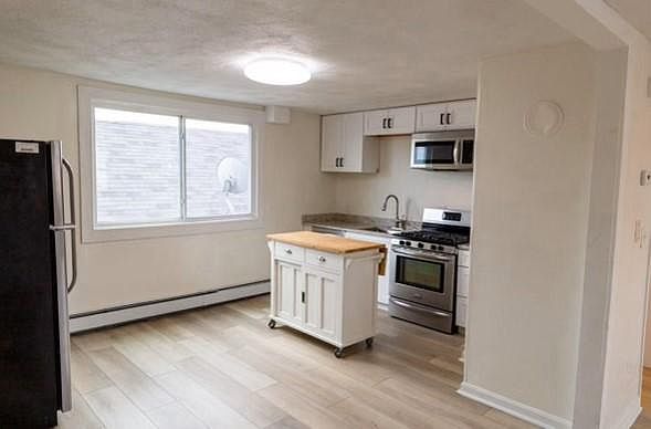 This spacious 3-bedroom, 1-bathroom apartment offers 1,100 square feet of comfortable living space. Recently renovated with new flooring and a fresh coat of paint, this apartment features a modern kitchen with granite countertops, stainless steel appliances, a butcher block top kitchen island, and an updated bathroom with a tiled shower. Laundry is conveniently located in-unit. One off-street parking space is available in the driveway, and additional storage space for the unit is located in the basement. Interested in a showing? Please inquire through Zillow. Applicants should have a credit score of 600 or higher and an income at least three times the rent. Small pets (up to 20 lbs) are welcome with an additional pet rent of $50 per pet. Please note, there is a limit of one person per room for occupancy. Don't miss out on this opportunity to make this charming apartment your new home! Owner pays for water. Tenant responsible for electric and gas. Security Deposit and First Month's Rent due at signing. Small pets allowed for $50/month per pet.