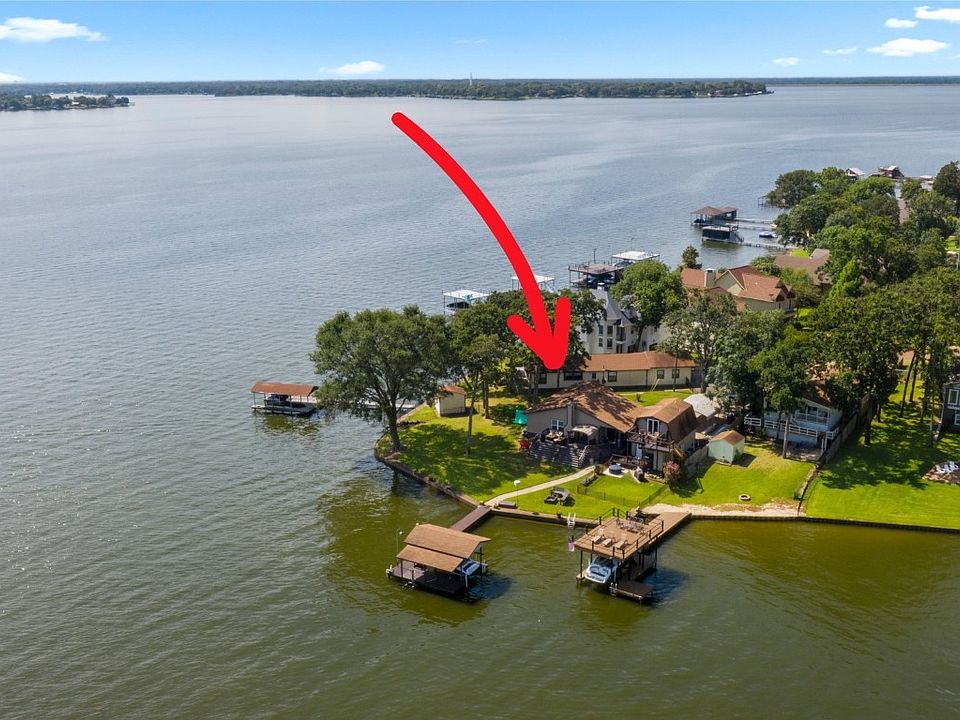 This is the one you won’t want to miss with wide open water views, double lots & gorgeous sunrise views! Bedroom & bathroom count & sqft include main & guest house. Deep water location where there’s still plenty of water depth to take your boat out! Main house plus guest house which is perfect for weekend guests! STR not allowed per HOA. Main house is 3 bed, 2 bath & the guest house is 2 bed, 2 bath plus a loft. Tons of opportunity to put your own touches on this beautifully located home! Newly renovated bathrooms & fresh interior paint. Located only .5 miles from Pinnacle Country Club. Boathouse is located at wide cove, 4-5 ft deep, so its perfect for fishing and swimming as well! 6 ft deep at boat entry. Tons of entertainment space at main house & guest house alike. Large 400 sqft deck, balcony, covered rear porch, & built-in firepit with bench seating. Don't miss the hot tub on its own concrete slab! You can't beat the lake views from this double lot home with 163 feet of shoreline!