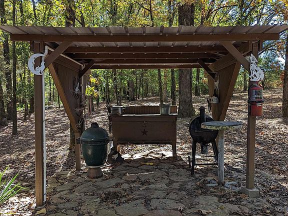 Beautiful cabin style home tucked away on 2.85 acres. Enjoy the peace and quiet on the two porches, located on the front and back of the house. In addition to an all electric HVAC system, you can warm up in front of the wood burning stove in the living room. This property is fully fenced and features a lockable gate on the driveway for your safety and peace of mind. See your projects come to life in the shop that has electricity and A/C.