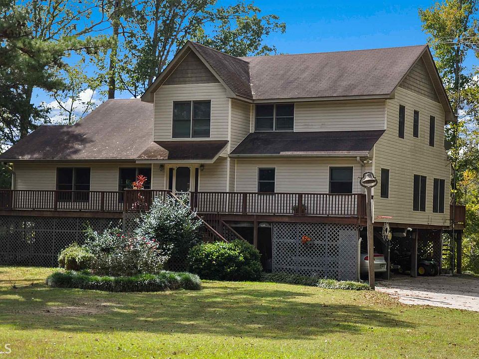 Huge price reduction:Home Sells AS-IS. A fabulous River Front 3/2.5 home on stilts provides all the modern day conveniences, yet the charm of a river front retreat, with open floor plan, cathedral ceilings, fireplace, master suite with spa style on-suite, walk in pantry, screened in porch for breath taking views of the River. 2 additional rooms that can be additional bedrooms(noclosets) for possible 5 bedrooms or game rooms, craft rooms all in the Pike Co School district and all on 5.4 private acres. Screen porch overlooks River as well as bedroom balconies for morning coffee. Wrap around porch with ramp for easy access to workshop and garages under the house. Would make a great family home, Fishing/boating Getaway, Possible canoe/fishing business, Great central location.