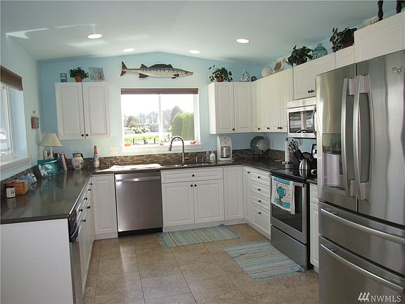 Casual luxury describes this exceptionally crafted beautiful water front home with 36' dock! Architecturally pleasing and well situated in cul-de-sac. Water view and attention to detail enhance your living pleasure with elegant entry, cathedral ceiling with stained glass windows. Open floor plan. Remodeled in 2014 with new kitchen w/quartz counters and new master suite with amazing luxurious bath. Garage with shop area. Enjoy community golf, swim, tennis, beach, and yacht club.